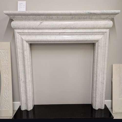 A stunning bolection stle fireplace handmade in a beautiful Italian Carrara Bianco marble