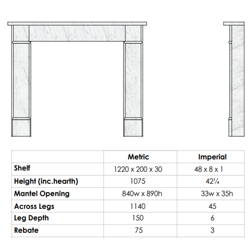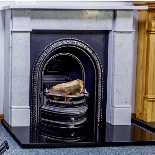 Our marble surrounds come with a standard 75mm rebate, designed for use with arched inserts, cast iron fireplaces, or tiled inserts etc.