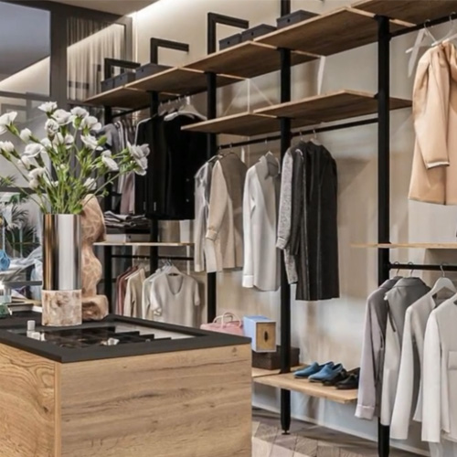 Make your design ideas of clothing store from vision into realty with our retail display products-display cases, mall kiosks, display tables,display racks,slat wall display,grid wall display, pegboard display, cash wrap counter