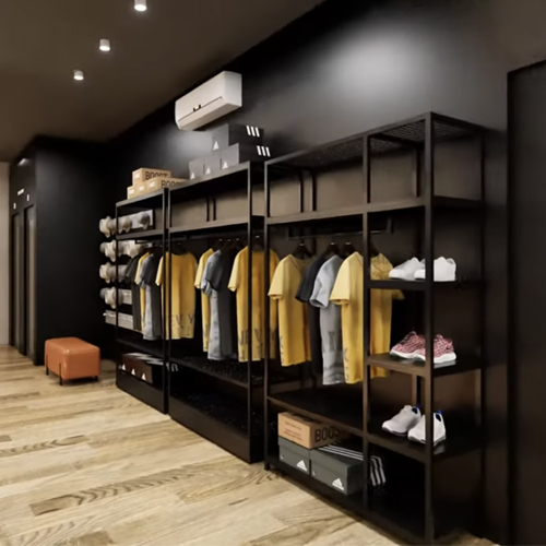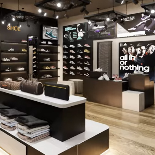 Sportwear retail interior space transformation with custom made display fixture and furniture as per floor plan and design prototye or drawing